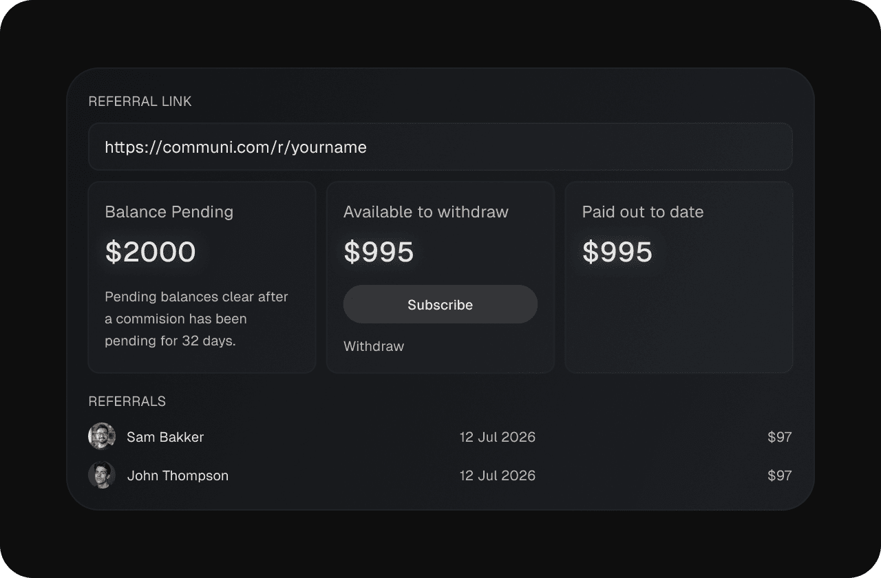 New members via your link auto-track — zero setup.