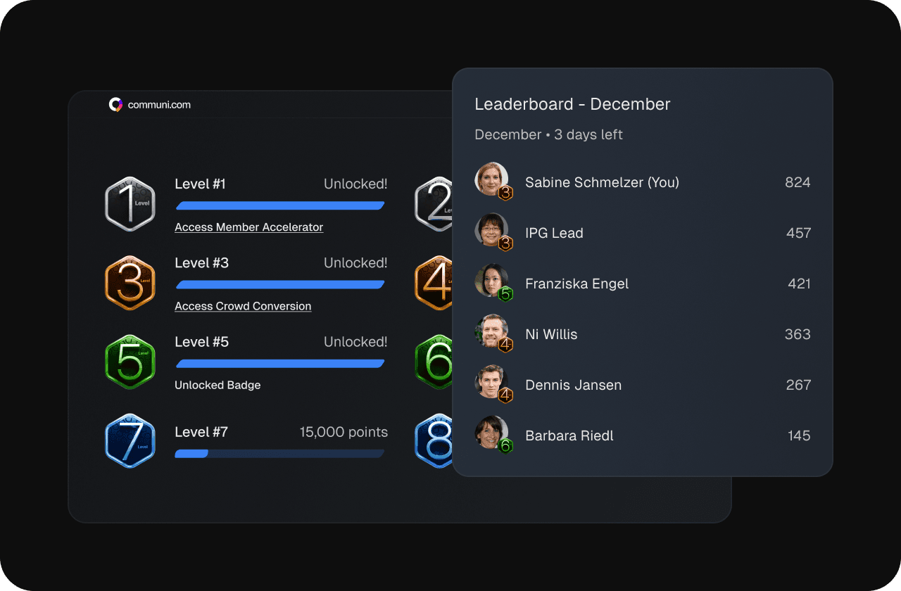 Earn badges, perks or access as members engage more.